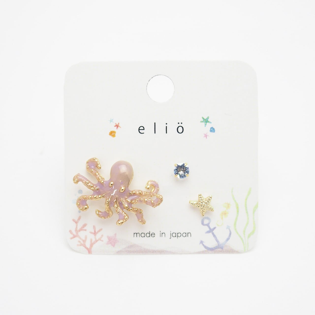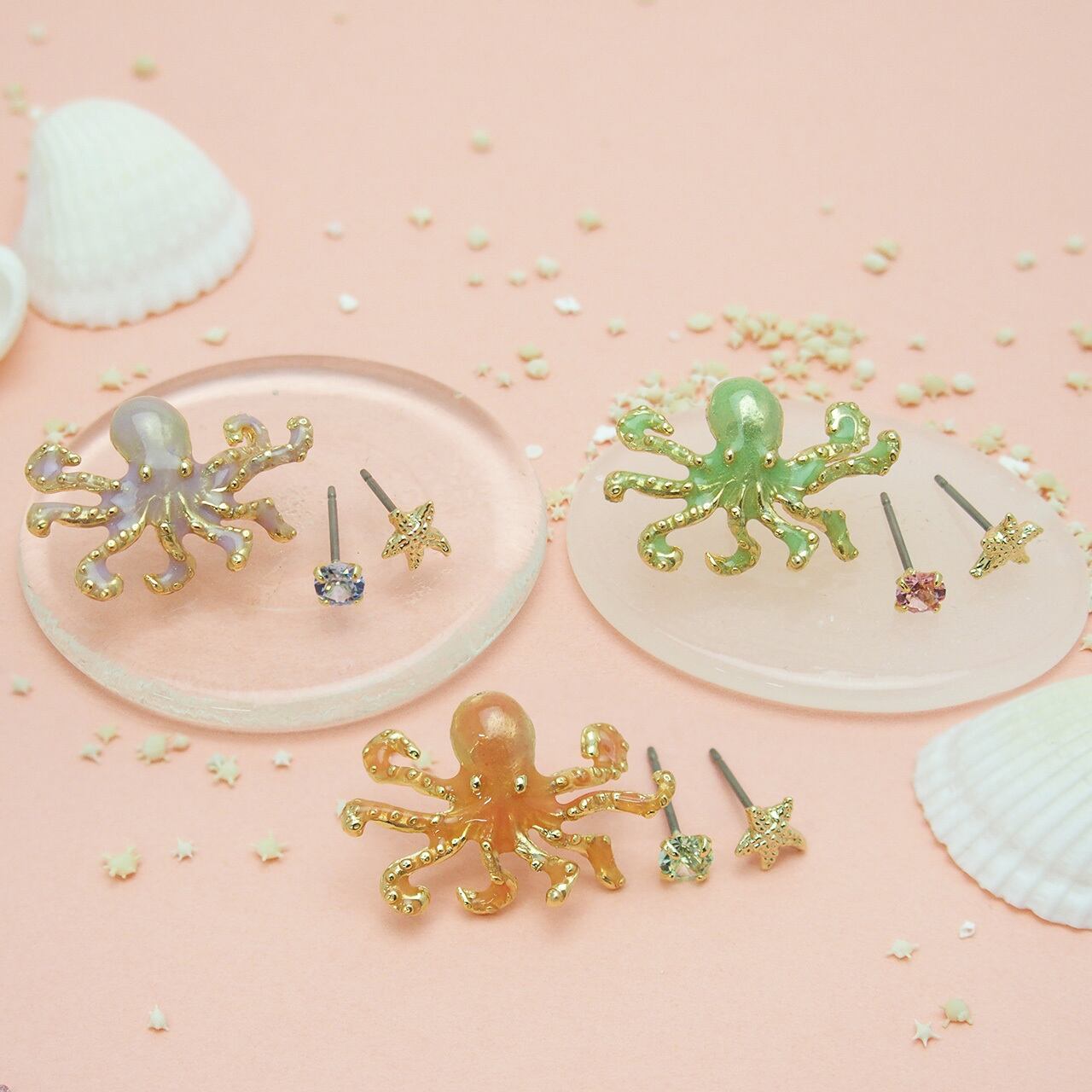 タコをモチーフにした、ユニークなセットピアスです。