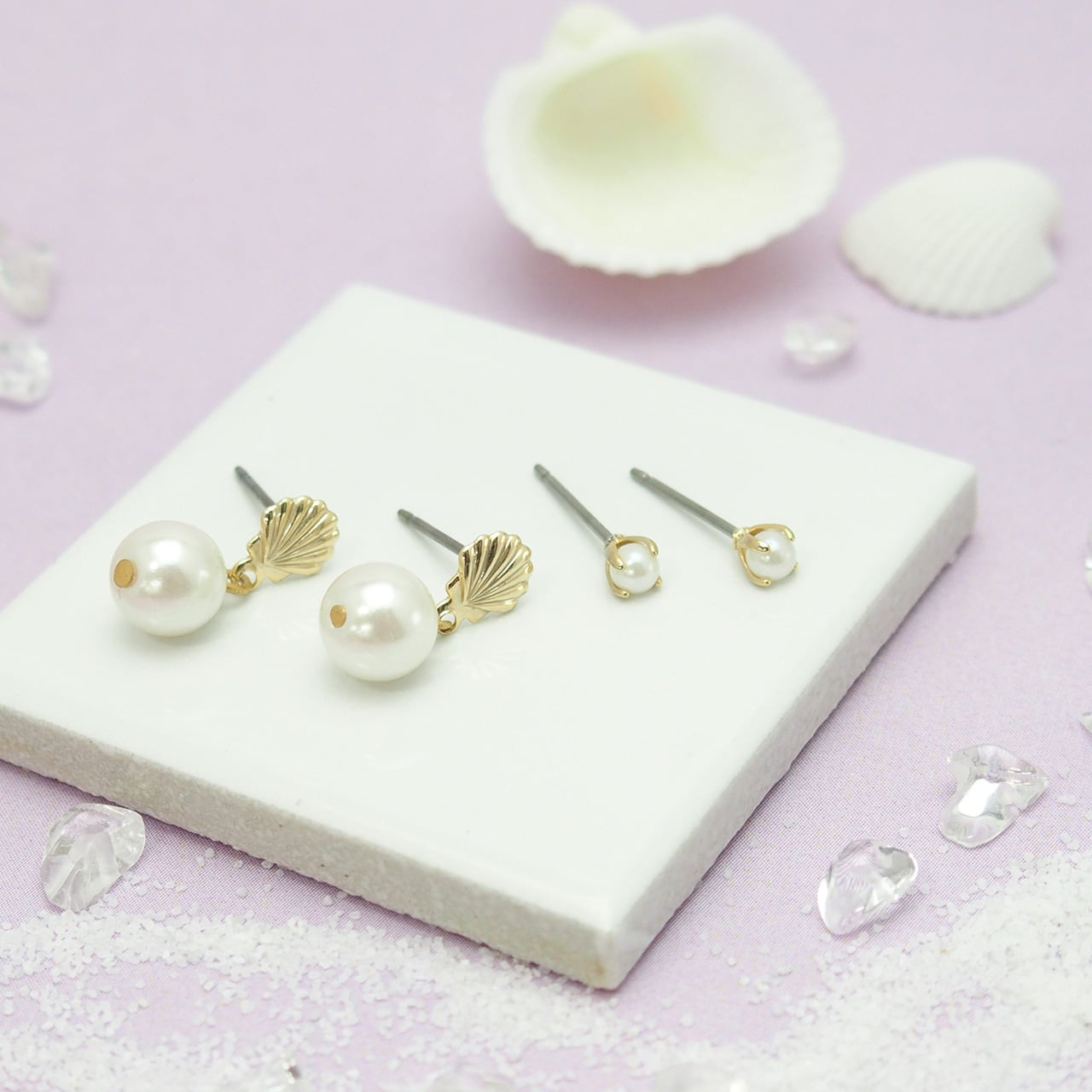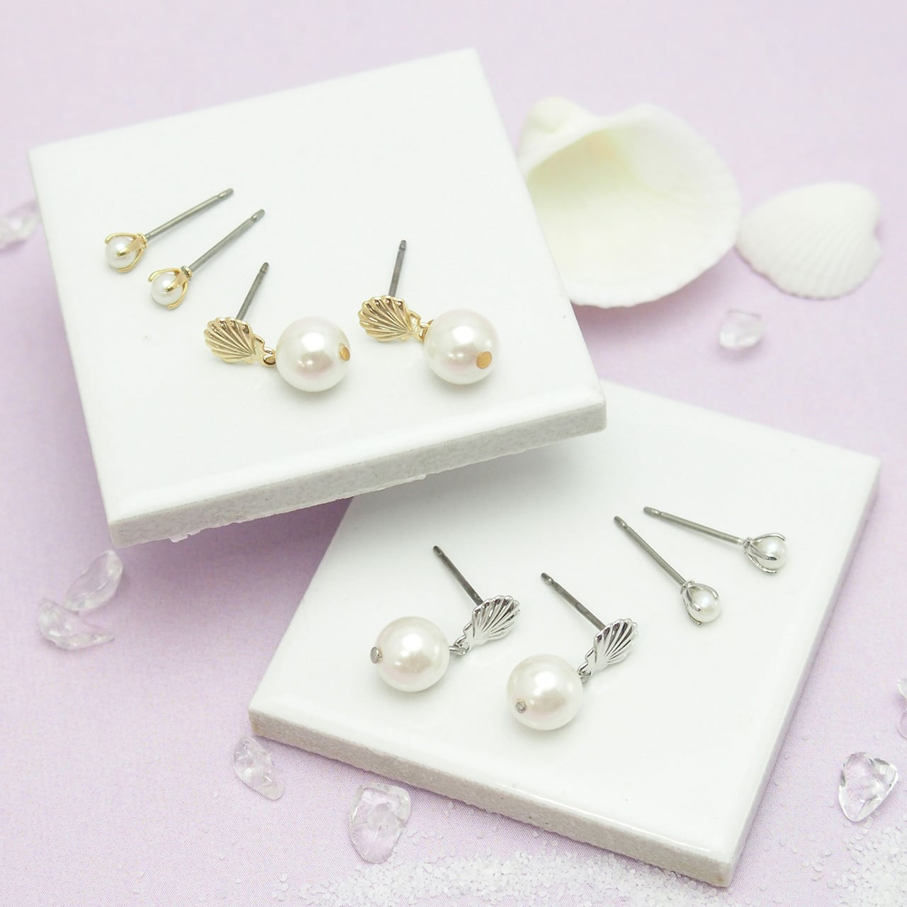 ゴールドとシルバーが大人シンプルな貝のセットピアス