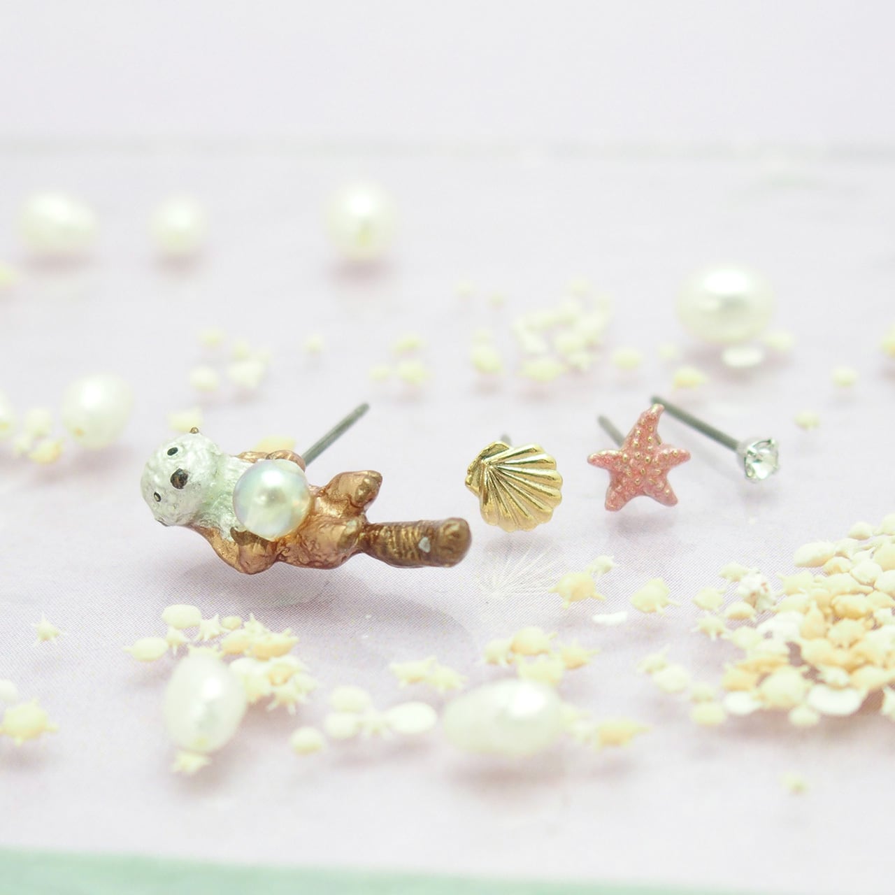 ラッコとイルカのセットピアス