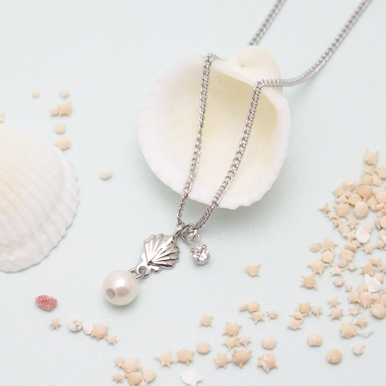 扇形の貝殻に揺れるパールがとてもエレガント♩