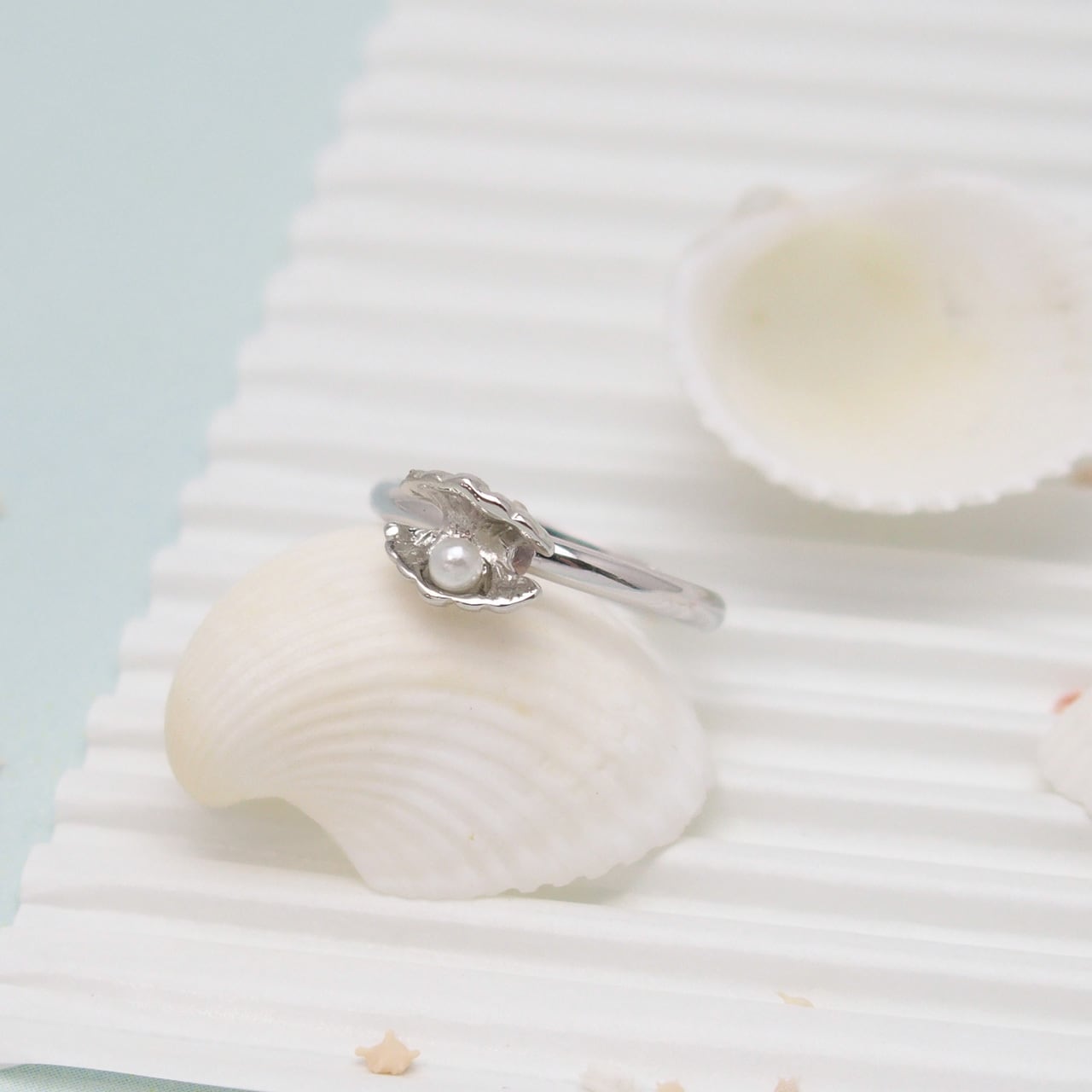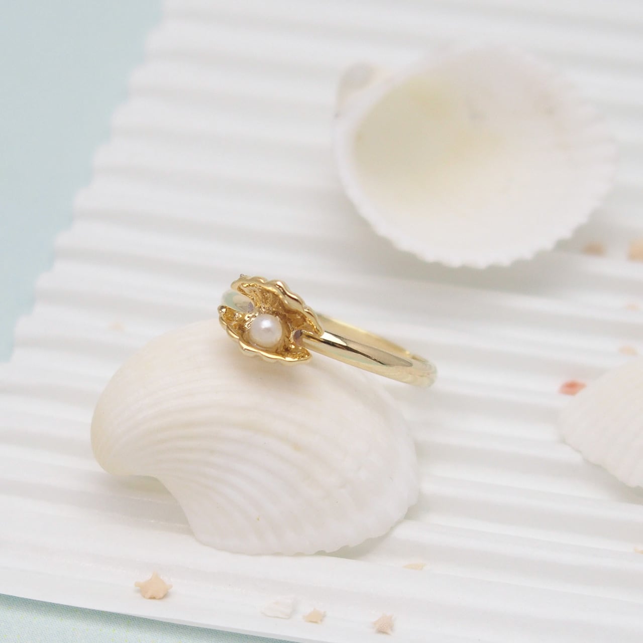 真珠を持った貝のフリーリングです♩
